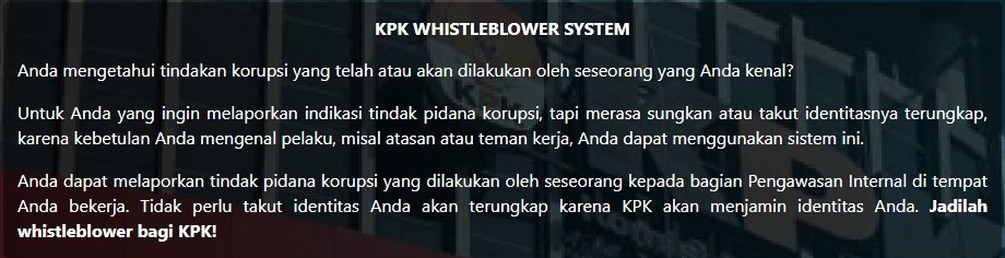 3. KPK Whistleblower’s System (KWS): http://kws.kpk.go.id