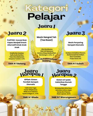 Sebanyak masing-masing lima inovasi terbaik dari dua kategori — Kategori Umum dan Kategori Pelajar — berhasil meraih predikat sebagai pemenang dan nominasi. Para pemenang berhak mendapatkan uang pembinaan, trofi, dan piagam penghargaan dari Pemerintah Kabupaten Batang.