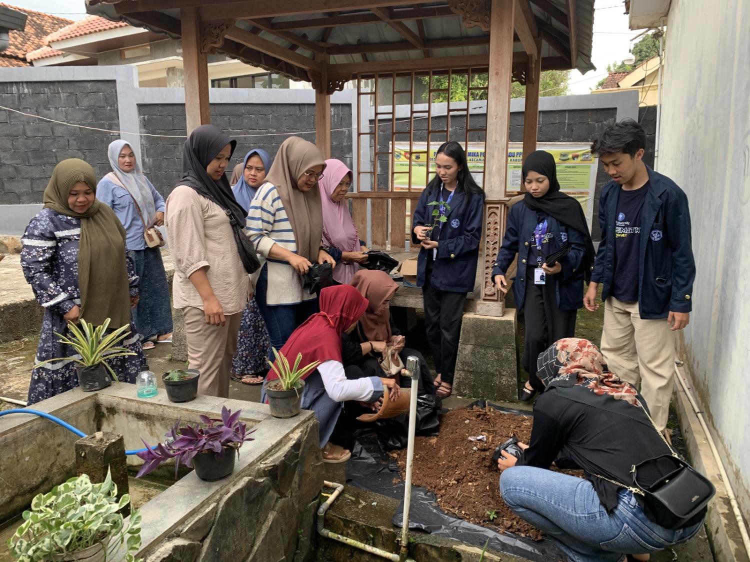 Kegiatan dimulai dengan sosialisasi Standar Operasional Prosedur (SOP) Budidaya Pekarangan Bergizi oleh mahasiswa KKN-T IPB. Materi yang disampaikan mencakup teknik menanam kangkung, terong, dan cabai, mulai dari pemilihan lokasi dengan cahaya matahari cukup, persiapan media tanam, teknik penanaman, hingga penggunaan larutan EM4 untuk menyuburkan tanah. Peserta juga diberikan panduan perawatan seperti penyiraman, penyiangan gulma,dan pemupukan sederhana.